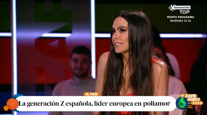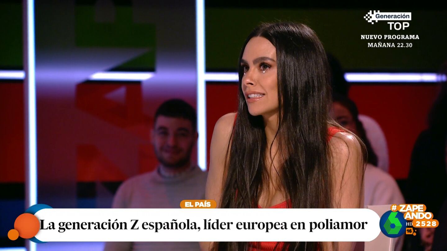 Sin embargo, Cristina Pedroche confiesa que, en su caso, si está enamorada de una persona, no puede estarlo de nadie más. "¿Quién te ha dicho que estén enamorados de todos?", espeta Dani Mateo, ante lo que la zapeadora se comenta: "¿Para qué quieres a otra persona? ¿Para un meneíto? A mí me da pereza, yo estoy muy bien".