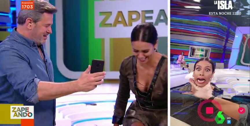 Los zapeadores se someten al último reto viral de Tik Tok: 'El túnel del tiempo', una línea que atraviesa la pantalla y va congelando la imagen para que los usuarios deformen su cara. La primera en usar este divertido filtro ha sido la causante del reto en Zapeando: Cristina Plaza.