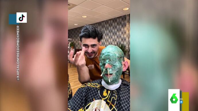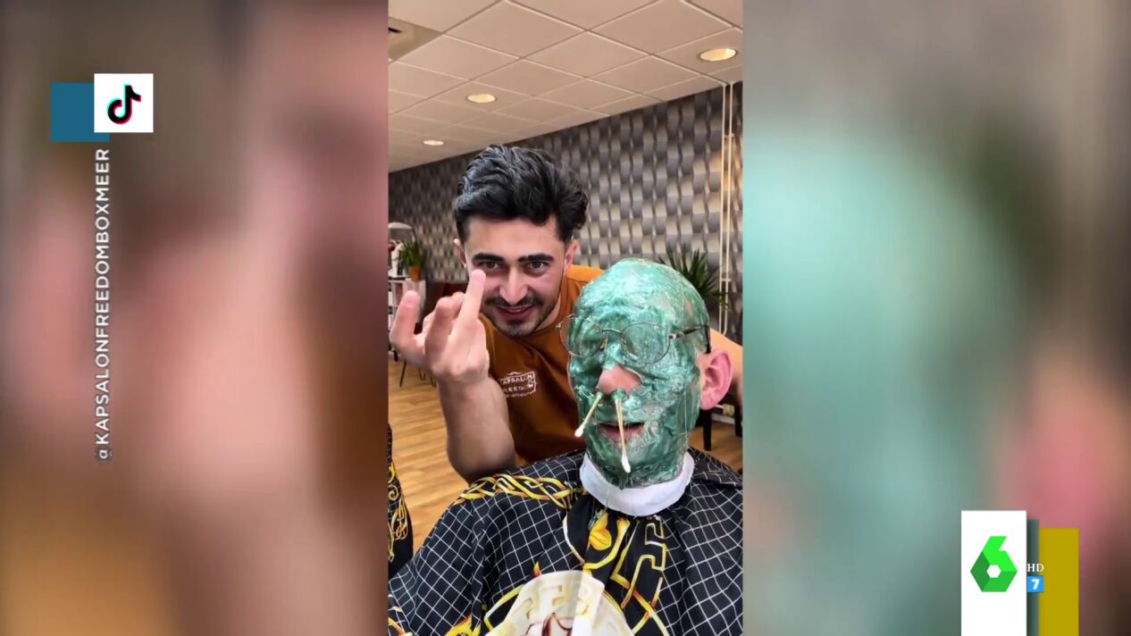 Si el primero se negaba a usar champú, el de este vídeo se niega a usar tijeras. Este barbero de los Países Bajos hace la cera a sus clientes por toda la cabeza. "¿En serio?", alucinan las zapeadoras. El peluquero se ha hecho viral en Tik Tok, donde sus vídeos acumulan millones de visualizaciones. "Es fascinante ver cómo la gente va allí a sufrir", afirma Cristina Plaza al mostrar cómo el peluquero quita la cera de la cabeza e, incluso, la cara de sus clientes.