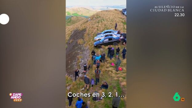 El grupo ha decidido lanzar tres coches sin conductor colina abajo para ver cuál es el más rápido en llegar al final. Un pasatiempo que, según los zapeadores, demuestra que les sobra tiempo libre.