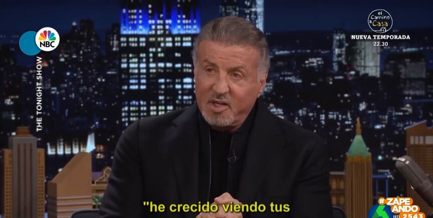 El presentador le muestra una imagen junto con el Papa Francisco en el que el mítico actor simula boxear con el pontífice. "¡No puedes hacerle esto al Papa!", le dice Fallon a Stallone. "Voy a ir directo al infierno", responde el actor. Sylvester le cuenta al presentador que el pontífice le dijo que "había crecido viendo sus películas" y que fue el propio Papa el que le pidió esa fotografía simulando que le iba a dar un puñetazo.