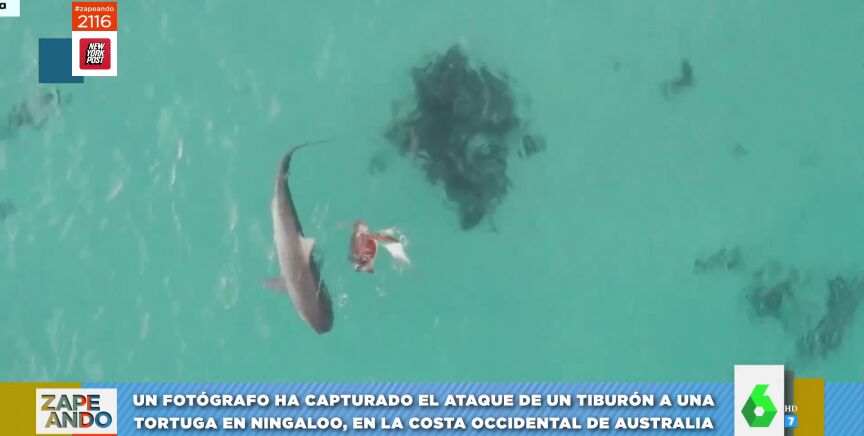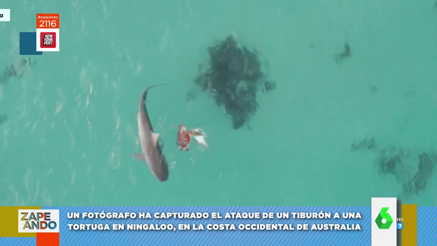 Pues gracias a un fotógrafo, los zapeadores han podido descubrir la sorprendente técnica que tienen para zafarse de sus depredadores. En este vídeo se puede observar cómo sobrevive una tortuga a los repetidos ataques de un tiburón: "No es suerte", aclara Miki Nadal, "porque lo hace una y otra vez hasta que el tiburón se cansa y finalmente el reptil puede seguir su camino".
