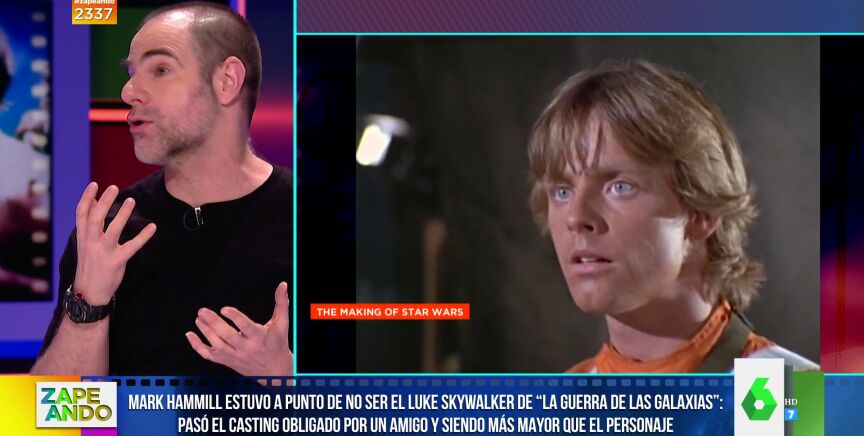Alberto Reyvisita Zapeando para hablar de actrices y actores que llegaron a lo más alto, pero en una sola película. Este es el caso de Mark Hammill, el actor que dio vida al mítico Luke Skywalker en Star Wars, una saga que "le dio la gloria y, al mismo tiempo, le arruinó la vida" porque se quedó encasillado en ese papel.