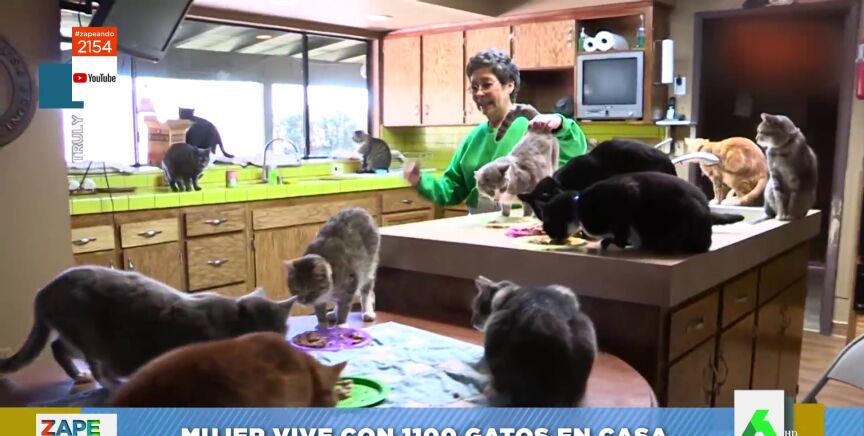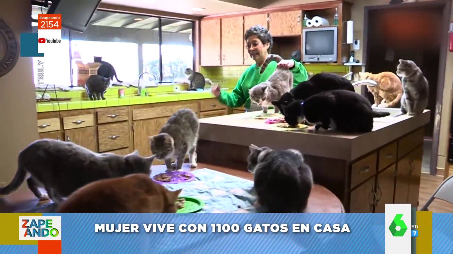 Una mujer se ha vuelto viral después de compartir su historia en las redes sociales y mostrar que convive con más de 1.100 gatos. "¡Cómo tiene que oler esa casa!", no puede evitar reaccionar Iñaki Urrutia al ver este vídeo de Zapeando.