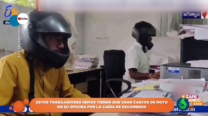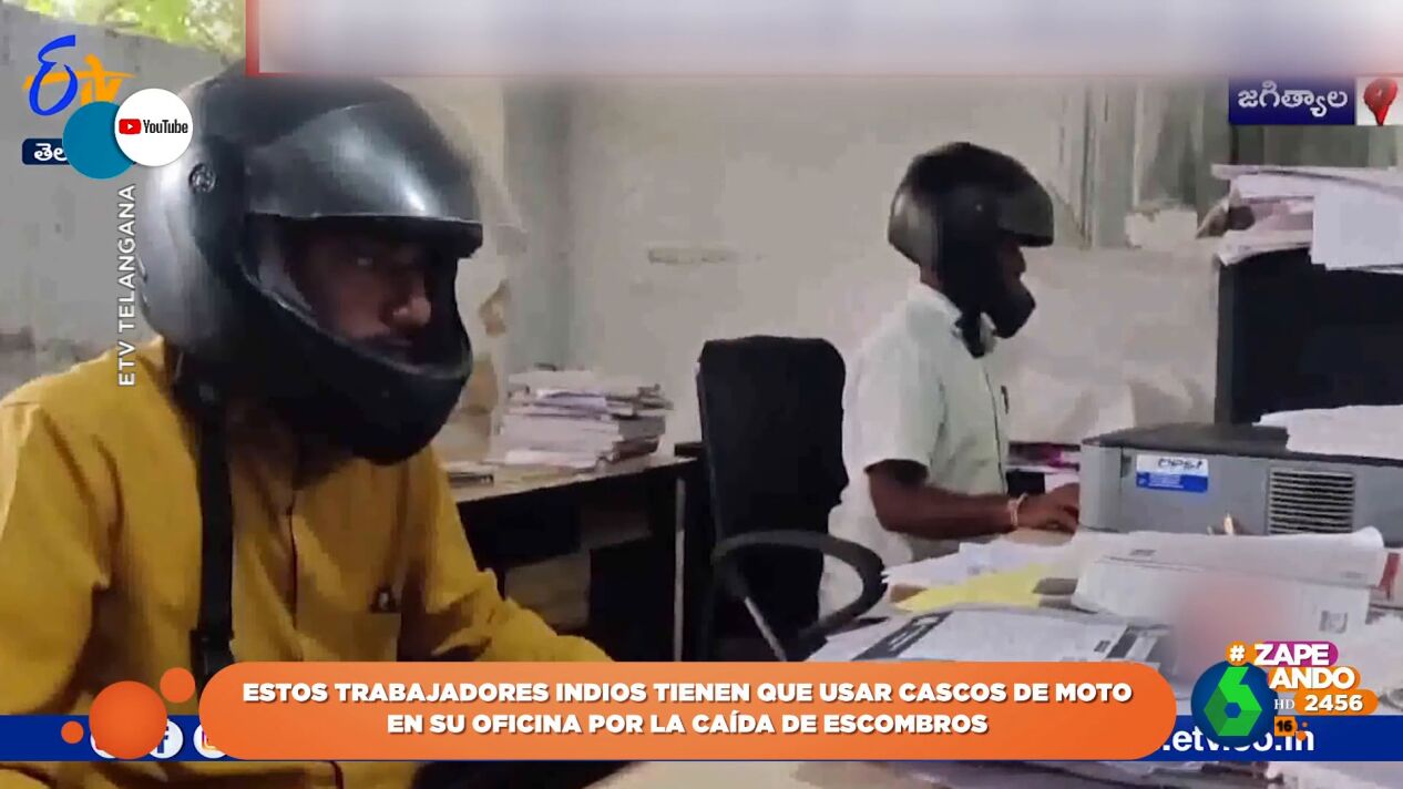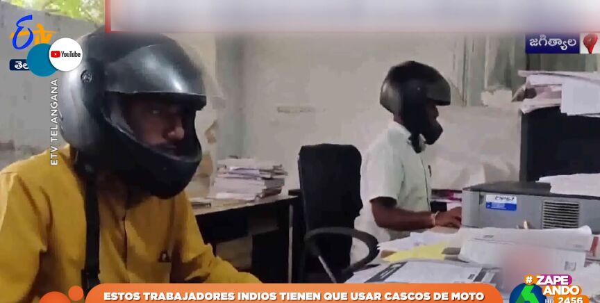 Los hombres que se ven en el vídeo trabajan en una oficina de la India y deben llevar esos cascos para protegerse de la caída de escombros. Ya puedes ver las imágenes en el vídeo principal.