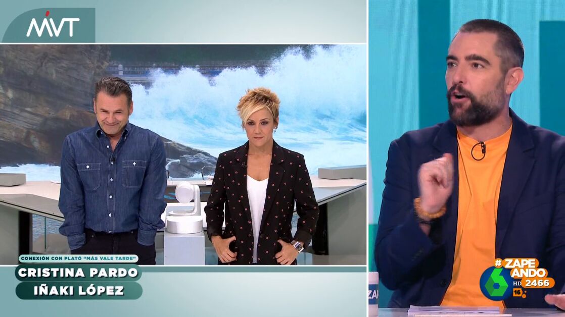 Dani Mateo conecta, como cada tarde, con el plató de Más Vale Tarde para conocer los principales temas que se tratarán durante el programa vespertino de la mano de sus presentadores, Cristina Pardo e Iñaki López. Pero en la conexión, más bien, vuelan los 'dardos' entre los zapeadores y los presentadores de MVT.