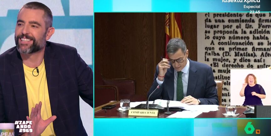 "Viendo el éxito que ha tenido, si yo fuese Sánchez pasaba de la política y me hacía influencer", afirma Nacho García. "Esa va a ser su puerta giratoria", añade Dani. El presentador de laSexta indica que como Sánchez está adelgazando tanto, "las gafas le van grandes y parece un delfín".