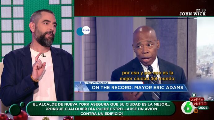 Dani Mateo, por su parte, decide "romper una lanza" por el alcalde y asegura que "él estaba diciendo que es una ciudad muy complicada de gestionar", si bien admite que "en Nueva York, decir 'avión' y 'edificio' no queda bien, por lo que sea".