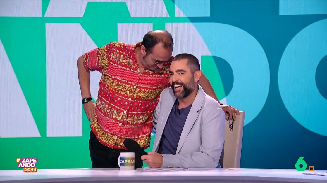 Aunque lo habitual cuando Dani Mateo arranca Zapeando es que haga algún comentario sobre los looks elegidos por parte de los zapeadores, en esta ocasión su atención se ha ido a la parte del equipo que no se ve. "Siempre suelo destacar las camisas de Quique pero hoy eres el típico tío gris en el que nadie se fija", afirma el presentador.