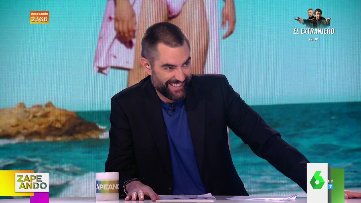 Dani Mateo se interesa en los bañadores paqueteros que diseña Eduardo Navarrete, que visita Zapeando como 'El Acoplado' para presentar su colección. Así reacciona cuando el presentador le pregunta si los vende con relleno.