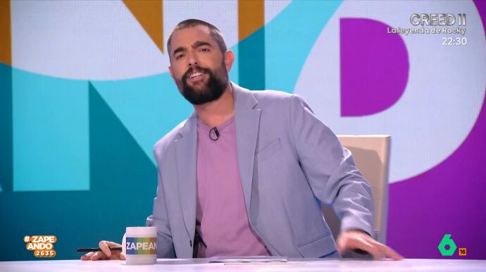 Dani Mateo recuerda en el programa que hoy la selección española de fútbol juega su tercer partido en la Eurocopa 2024. Un partido al que no le da demasiada importancia, debido a que 'la roja' ya está clasificada para los octavos. "Ya no tiene importancia. Yo creo que van a salir los alevines porque vamos así de sobrados", bromea el presentador.