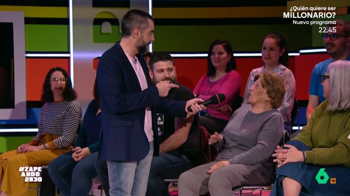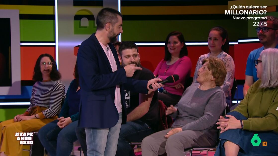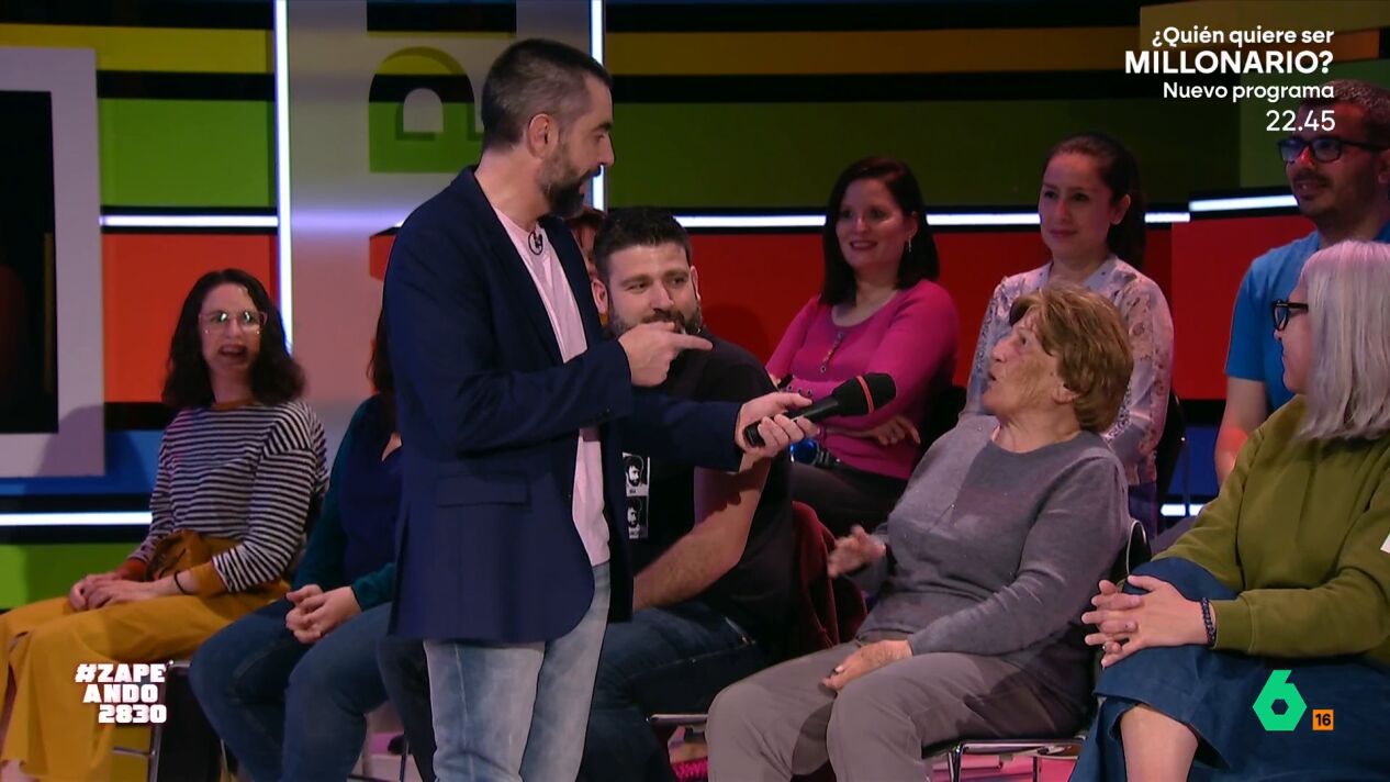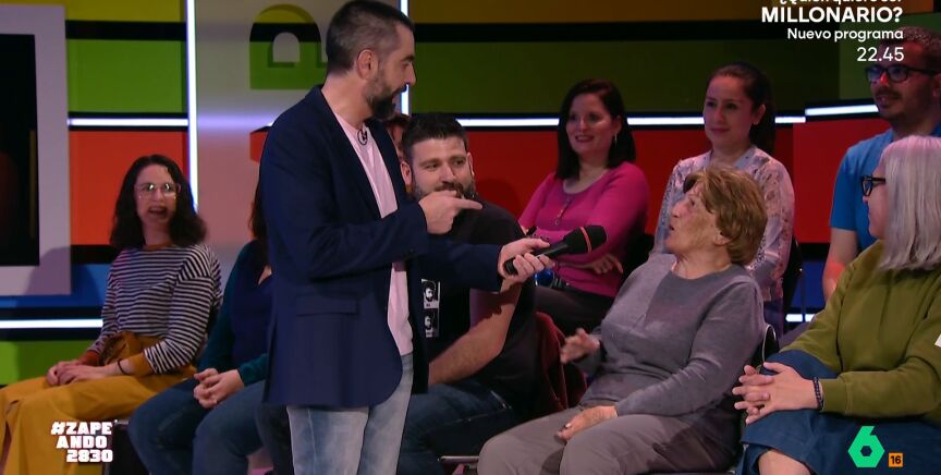 Entre el público que ha acudido hoy al plató de Zapeando para ver el programa hay una espectadora muy especial: Adriana. Como le cuenta a Dani Mateo, ve el programa desde sus inicios. "Os veía desde que estabas en 'Sé lo que hicisteis'", explica Adriana al presentador. "Lo suyo ya es paciencia", responde Dani.