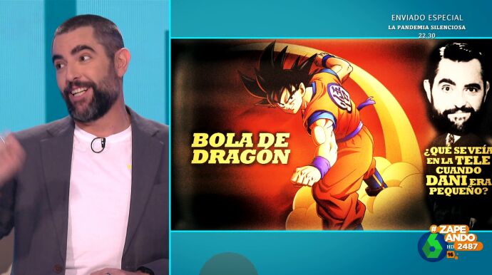 En Zapeando hacen un repaso de qué se podía ver en la televisión cuando Dani Mateo era pequeño. A principios de los 90 triunfaban series como 'Salvados por la campana', o 'Bola de Dragón', que el presentador veía en catalán.