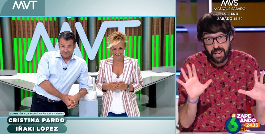 "Es hora de ceder la tele a Iñaki López y Cristina Pardo", anuncia Dani Mateo, que como cada día, conecta con el plató de 'Más Vale Tarde' para escuchar la última hora de la actualidad informativa. Sin embargo, los presentadores aprovechan la ocasión para meterse con él, pero también con Quique Peinado.