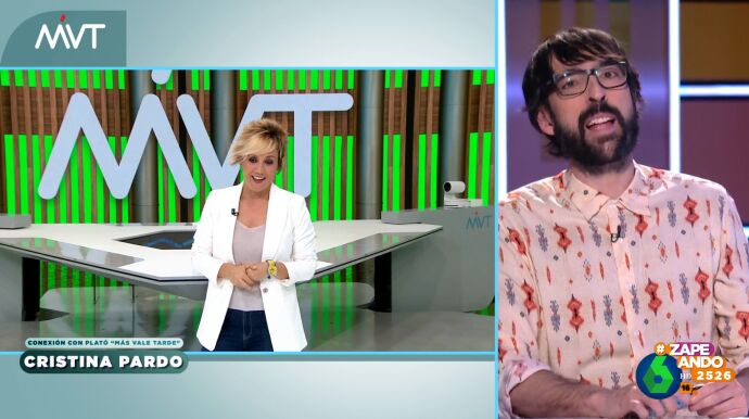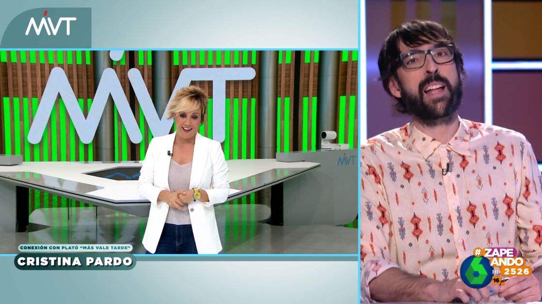 Zapeando conecta con Más Vale Tarde para conocer algunos de los temas que tratarán en el programa vespertino. En esta ocasión, Cristina Pardo conecta en solitario con los zapeadores, algo que provoca los comentarios de los colaboradores.