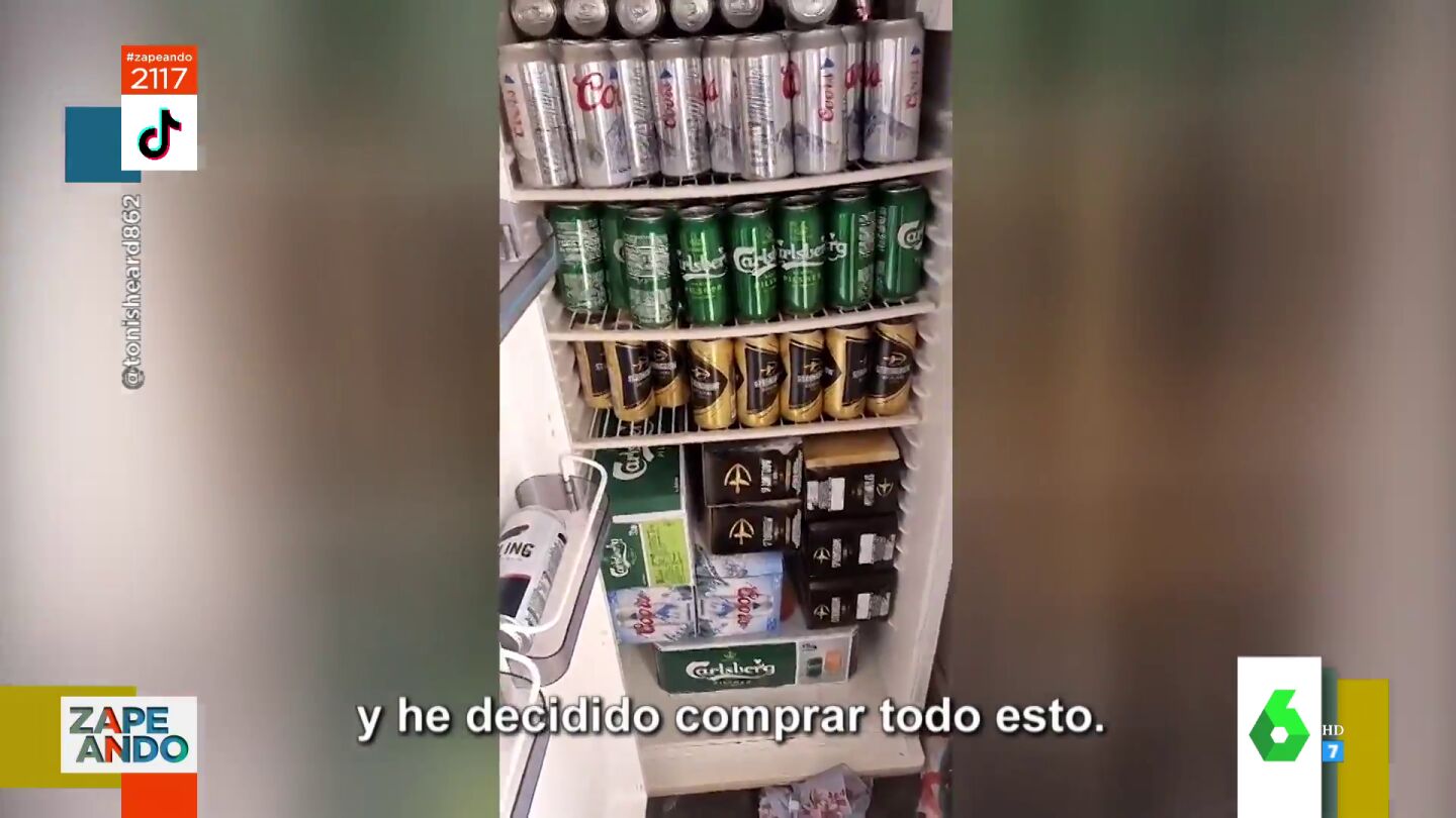 "Os voy a enseñar lo que se ha comprado una mujer inglesa con las 150 libras que le ha devuelto el Ayuntamiento de los impuestos", expresa Quique Peinado a sus compis de Zapeando, antes de mostrarles este vídeo que está causando furor en Tik Tok y en el que se ve cómo una mujer ha llenado la nevera de cervezas con este dinero que el Ayuntamiento devuelve, en teoría, para que los ciudadanos lleguen a final de mes.
