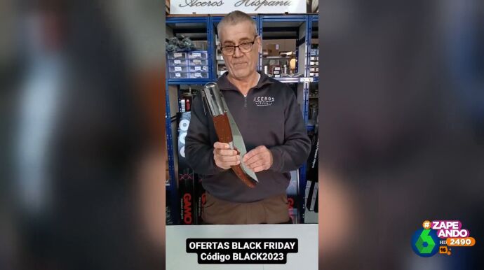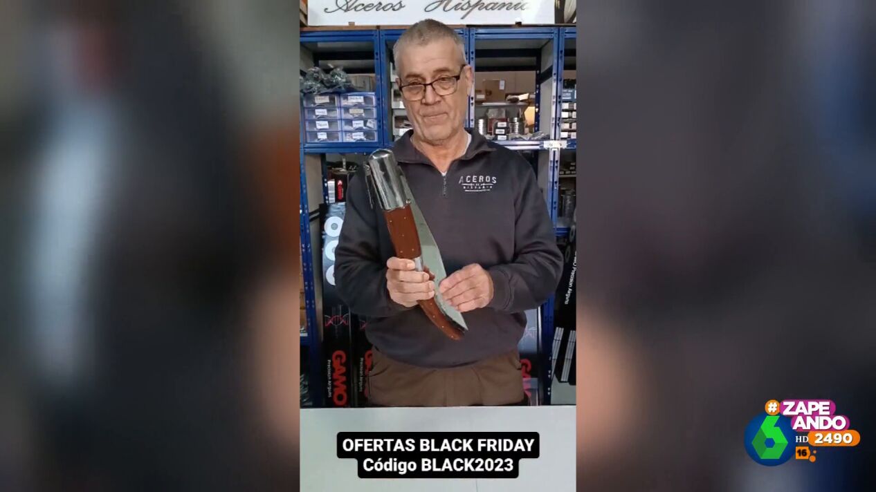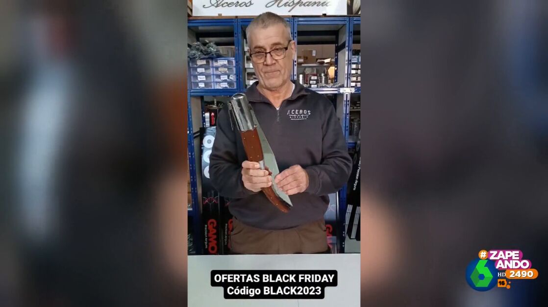 Como se puede ver en el vídeo, comparten un código de descuento para adquirir una navaja de unas dimensiones considerables. Quique Peinado afirma, tras ver las imágenes, que no ve sentido a rebajarla ya que "enseñas esa navaja así y todo el mundo te da todo el dinero que le pidas".