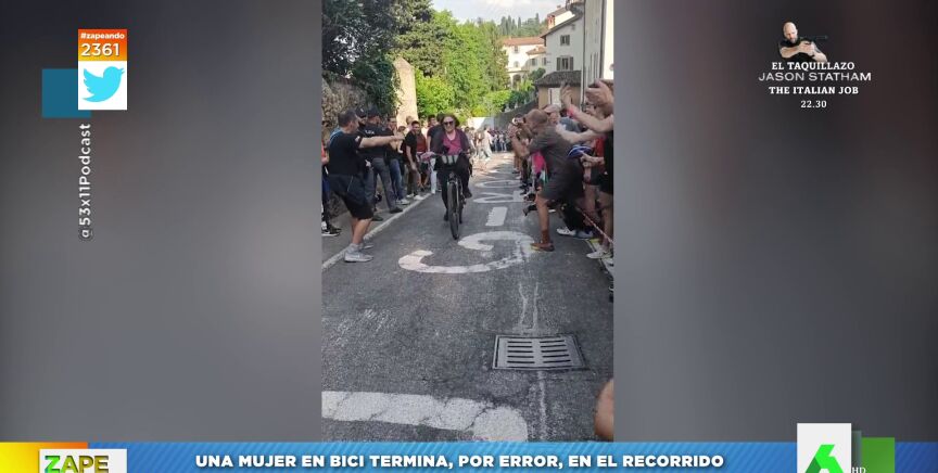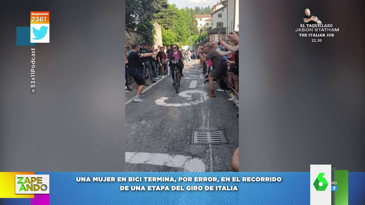 El despiste de una señora que termina, por error, en el recorrido de una etapa del Giro de Italia
