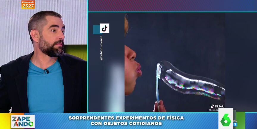 María Gómez muestra a sus compis de Zapeando una recopilación de vídeos viralesen los que hacen experimentos de física con objetos del día a día, como un CD. Con él y un mechero, se puede hacer una burbuja de plástico muy similar a las pompas de jabón.