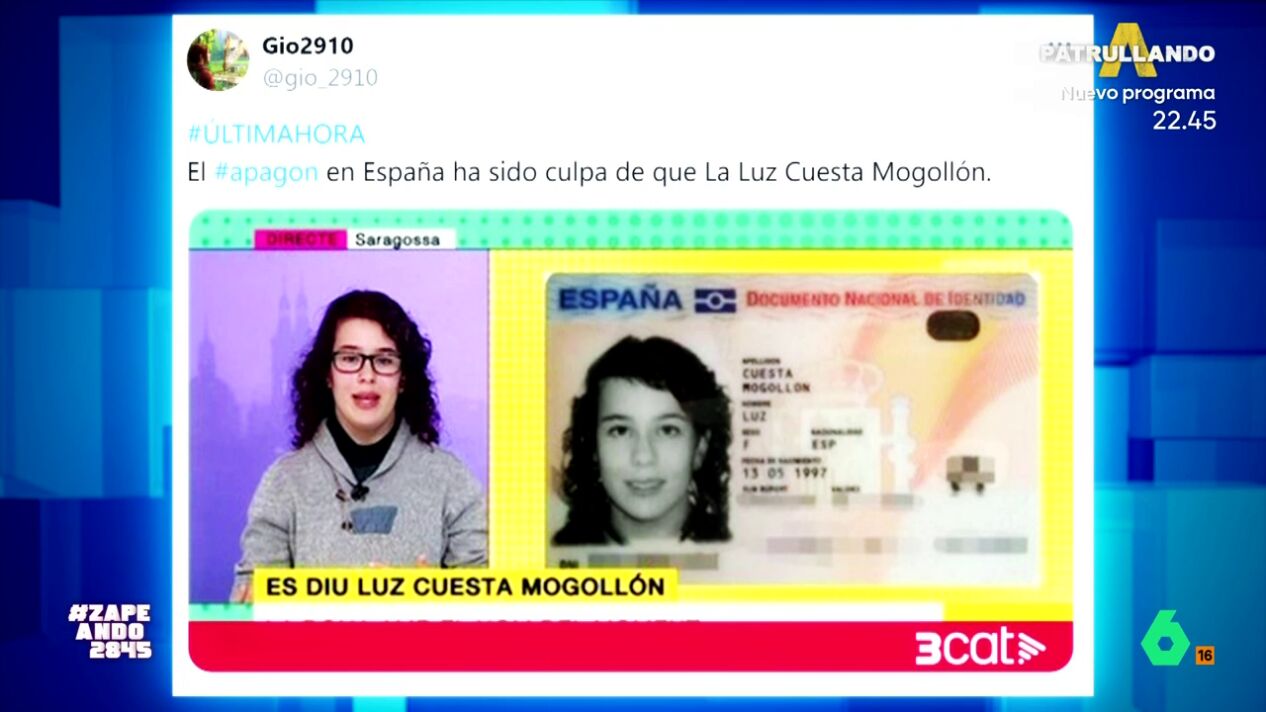 Esta acusación no pasó inadvertida para los Zapeadores, que rápidamente se hicieron eco de la noticia. "Oye, yo no tengo la culpa, ni siquiera vivo en España", publicó la chica en su perfil de X. No obstante, para María Gómez esto confirmó "la tesis de que se trató de un ataque desde el exterior", algo que ya descartó Red Eléctrica Española. "Al ver la que se ha liado, Luz ha decidido cambiarse el nombre. Ahora se llama 'Lola Mento'", añadió Nacho García.