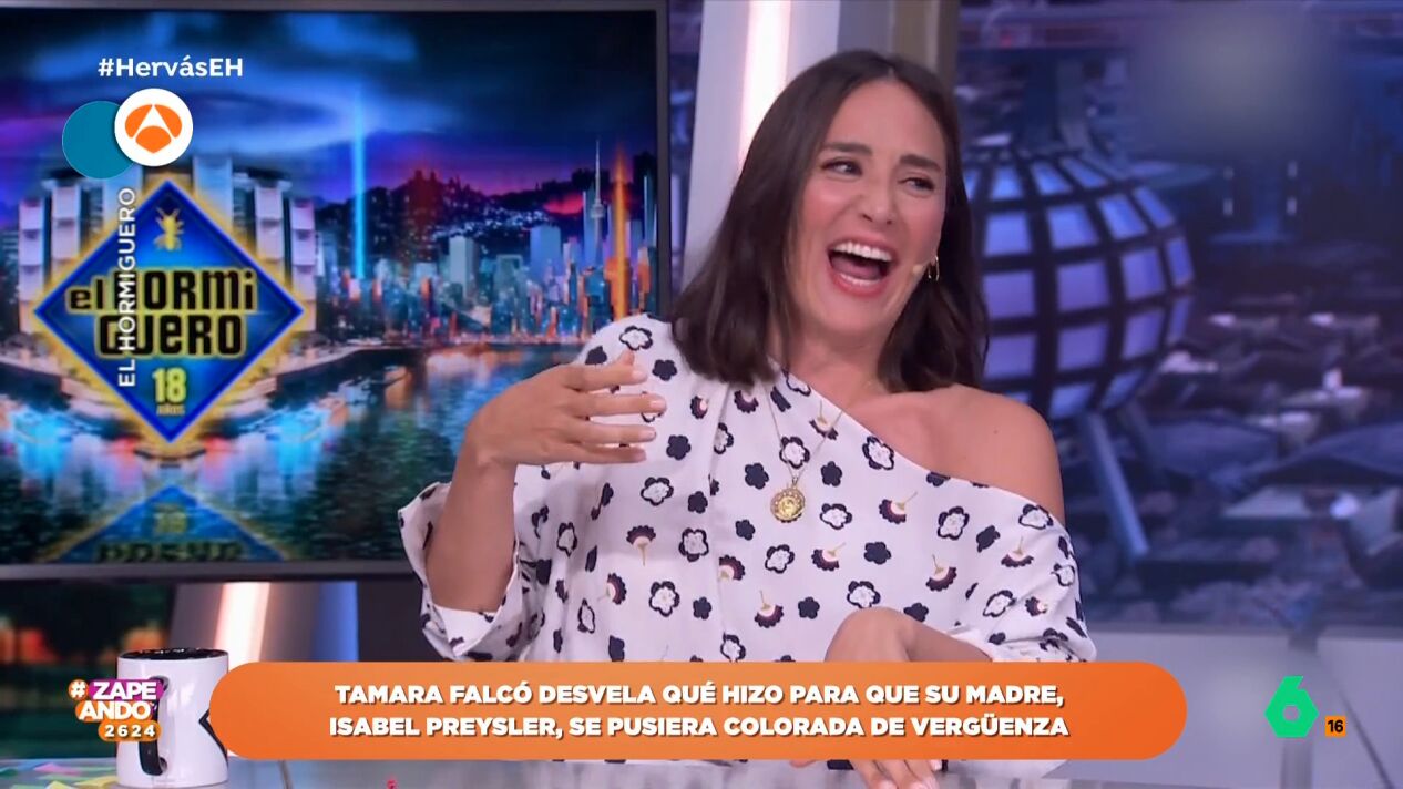 "Tamara Falcó, para sorpresa de todos, no es perfecta", avanza Dani Mateo a sus compañeros de Zapeando, a los que informa que la socialité estuvo este jueves en El Hormiguero y sorprendió a Pablo Motos con una confesión que sorprendió al presentador. Y, es que, hizo quedar en evidencia a su madre, Isabel Preysler, en un evento.