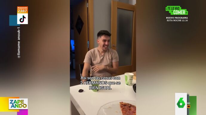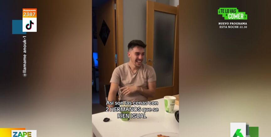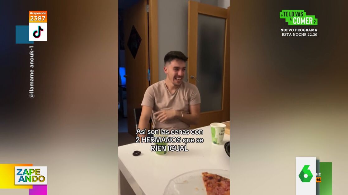 Una chica sube a sus redes sociales uno de los momentos más divertidos de la cena con su marido y su cuñado. Ambos tienen la misma forma de reír y al escucharse se contagian la risa el uno al otro.