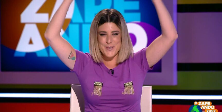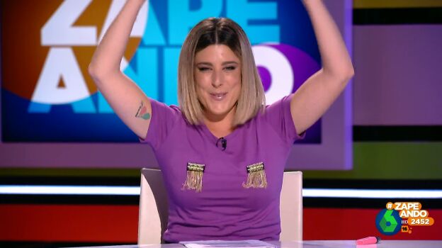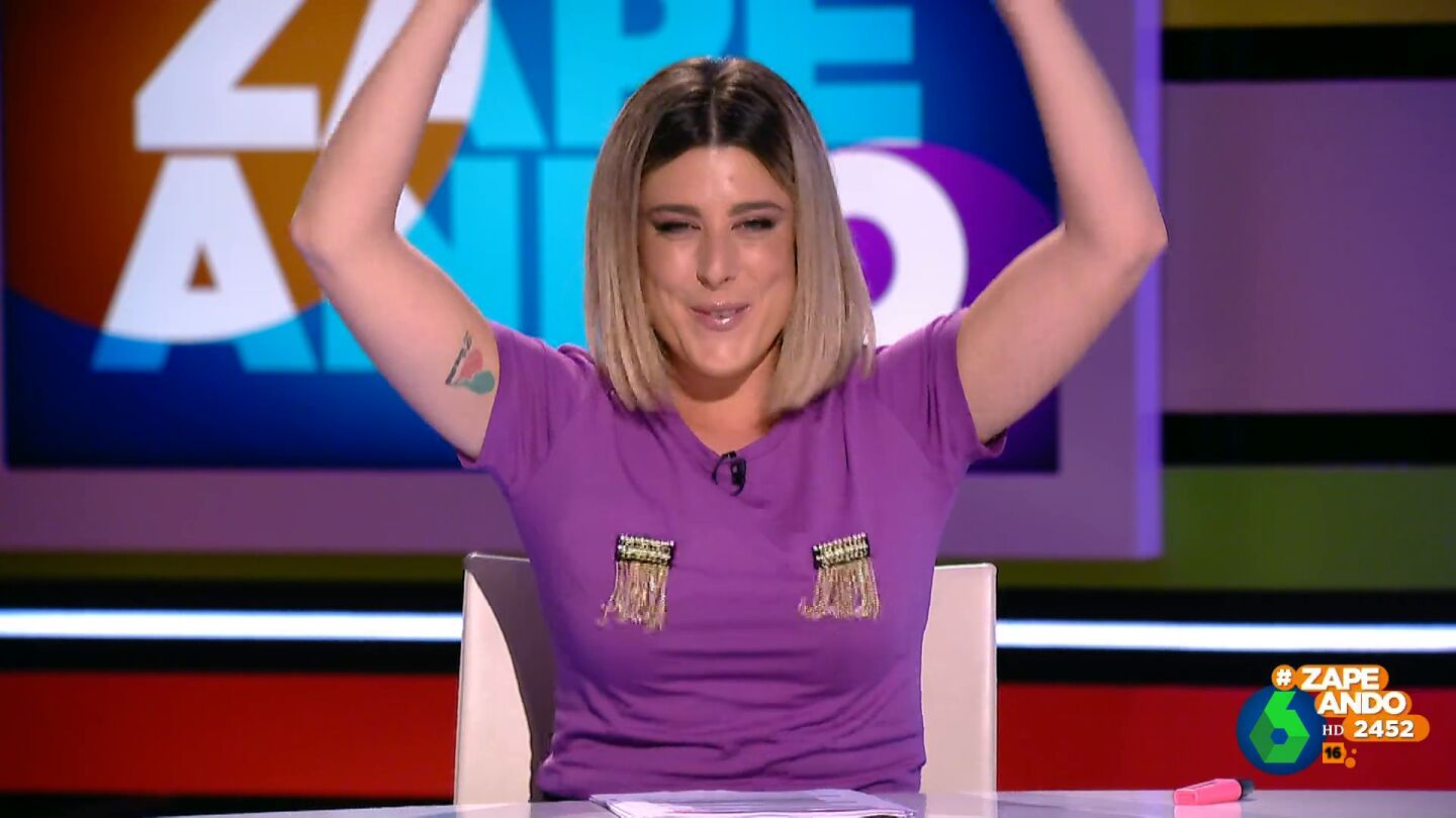 "Si empezamos con lo de Valeria Rosnos quedamos sin tiempo para el contenido", anuncia Dani Mateo al comenzar Zapeando. Y, es que, después de que la vasca haya "cumplido todos sus objetivos en la comedia, esta tarde se inicia en el mundo del circo y trapecismo", ironiza al ver los flecos que lleva colgando de los pezones.
