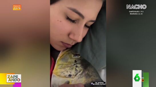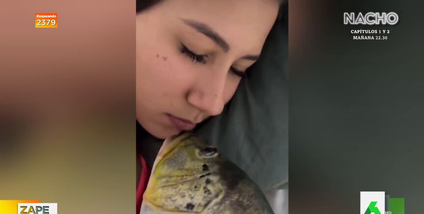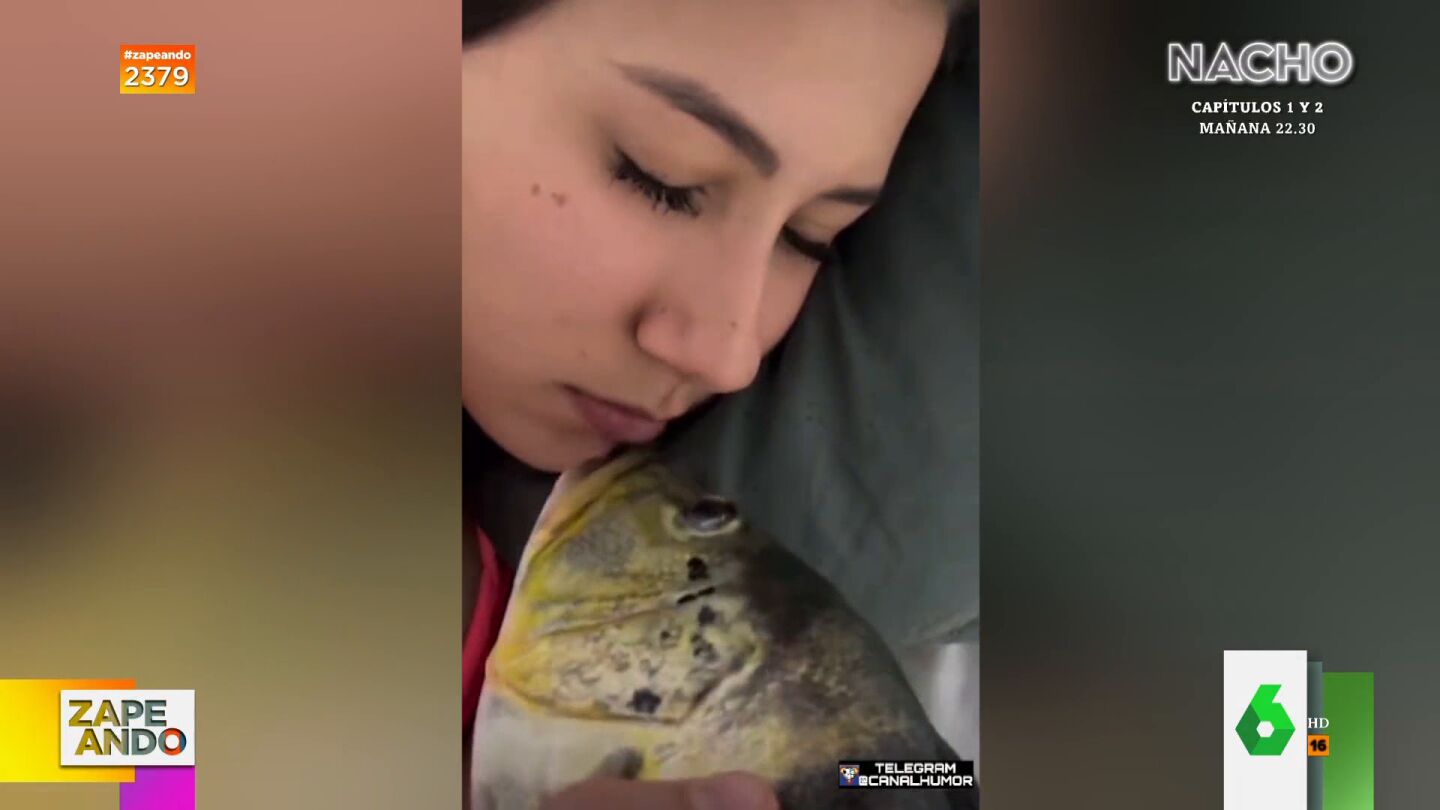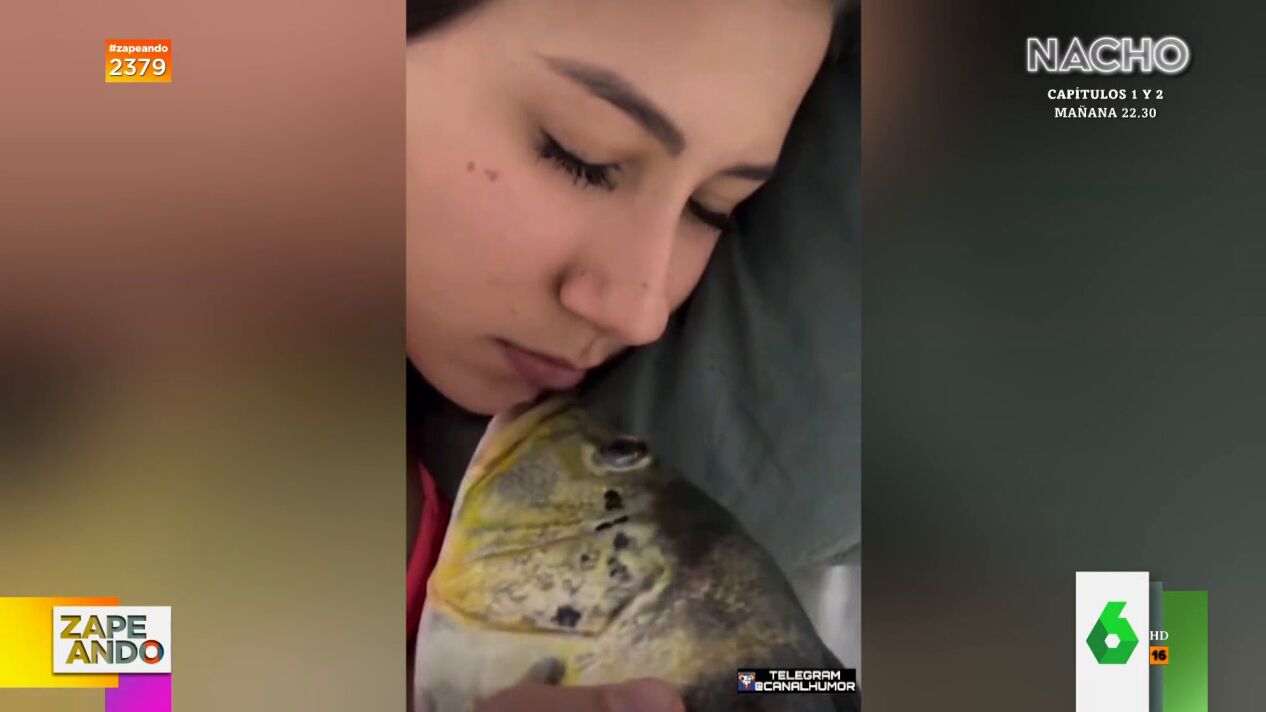 Lo que no esperaba era descubrir que no se trataba de su novio sino de un pez. Ella abre los ojos y, asombrada, salta de la cama gritando. "El amor será ciego pero oler huele", comenta la zapeadora, y añade: "A mí me hacen eso y no vuelvo a probar un pescado, ni al novio tampoco".