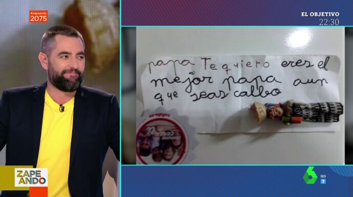 En el vídeo principal de la noticia te dejamos la divertida reacción de Dani Mateo a este adorable mensaje que dedicó una niña a su padre: "Se nota que esa familia tiene sentido del humor, porque esas bromas en casa de Will Smith no entran tan bien". ¡Dale al play!
