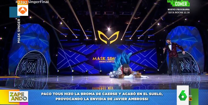 "La de Ambrossi puede ser claramente caída", comenta Dani Mateo con sus compañeros de Zapeando, pero duda de la de Paco Tous.¿Será una caída fingida o se cayó de verdad en la gran final de Mask Singer? Él mismo resuelve la duda sobre estas líneas.