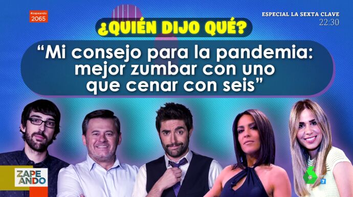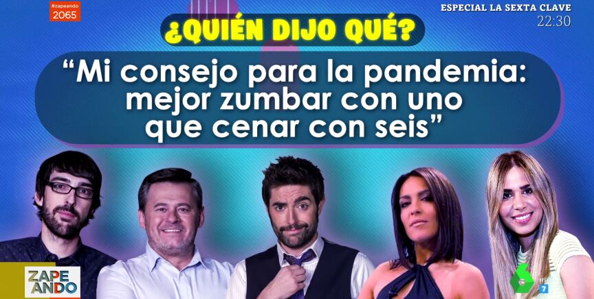 "Mi consejo para la pandemia: mejor zumbar con uno que cenar con seis" o "La envidia es una admiración mal gestionada", son algunas de las célebres frases que han pronunciado los zapeadores a lo largo de los últimos programas. "Ha sido divertidísimo ver como pensáis mal los unos de los otros", concluye su sección Santi Alverú. En el vídeo principal de la noticia te dejamos el juego al completo. ¿Quién logrará acertar más?