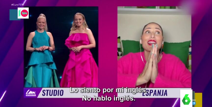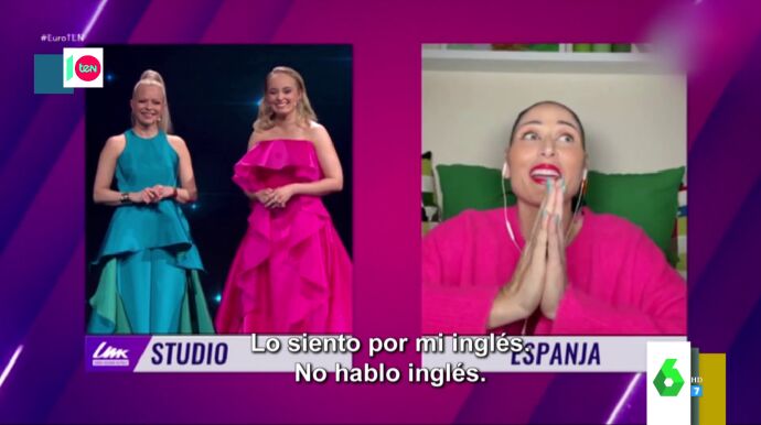 "Lo siento por mi inglés", avisa la cantante española nada más comenzar la conexión con el evento de Finlandia en el que elegían a su representante para Eurovisión.