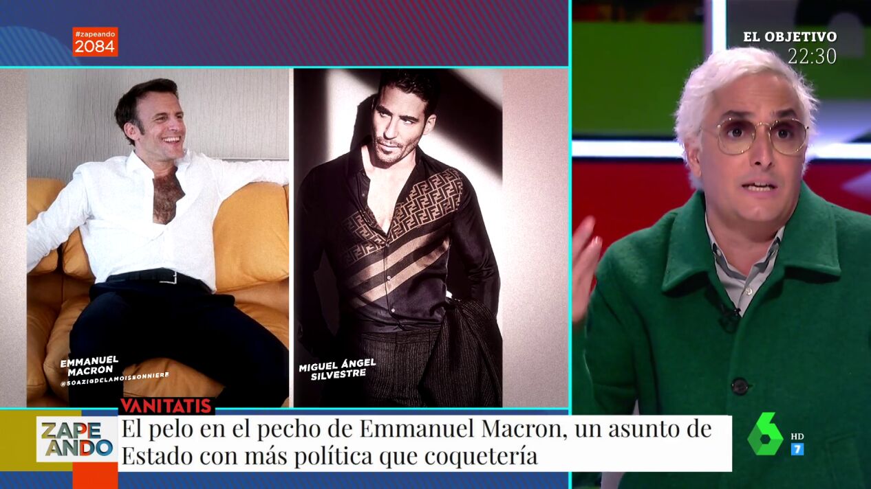 En la imagen, el presidente francés luce un escote plagado de pelo al que Josie ha dado buena nota. "¿Por qué no hemos visto esto antes? Donde hay pelo hay alegría", comenta el estilista tras ver la imagen, y recomienda "no tocarlo". "Hay gente que se quita este tipo de pelo para que se vea el músculo, me parece de lo más hortera", comenta.