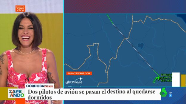"Arrancamos con una nuestra más de lo seguro que es viajar en avión", bromea Lorena Castell, que cuenta en el plató de Zapeando la sorprendente noticia de dos pilotos que se pasaron de destino al quedarse dormidos.