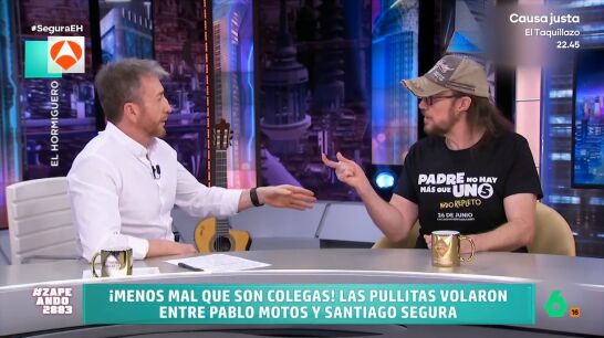 Ayer Santiago Segura visitó 'El Hormiguero', pero en lugar de ir a divertirse, fue a picarse con Pablo Motos. Los dos intercambiaros pullas desde por el "pecho palomo" del director, hasta porque Motos no había ido visto todavía 'Padre no hay más que uno 5': "La de Will Smith te hubiera gustado verla y la ves, por si te sale algún contrato", le contestaba Segura.