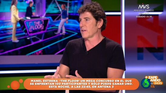 Manel Fuentes visita el plató de Zapeando para presentar 'The Floor' el nuevo concurso que estrena esta noche en Antena 3. Cien concursantes se batirán en duelo en una centena de categorías para conseguir arrebatarle a su vecino su casilla y ampliar su territorio.