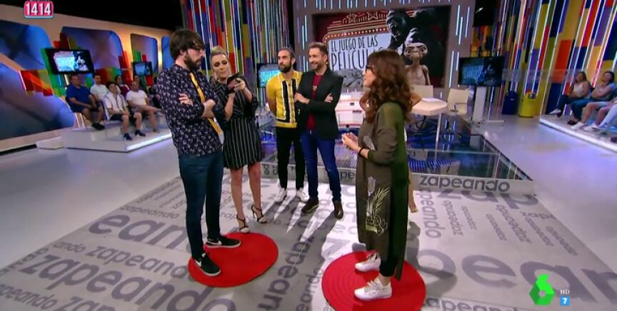 La primera pareja la forman Paula Prendes y Jon Plazaola. El zapeador tendrá que darle pistas a su compañera para que consiga acertar el título de la película. Sin embargo, sólo logran acertar una. Anna Simón se revela indignada con sus compañeros: "¡Que vergüenza!". "Oye Anna, nunca había jugado a esto", le contesta Paula Prendes a su compañera.