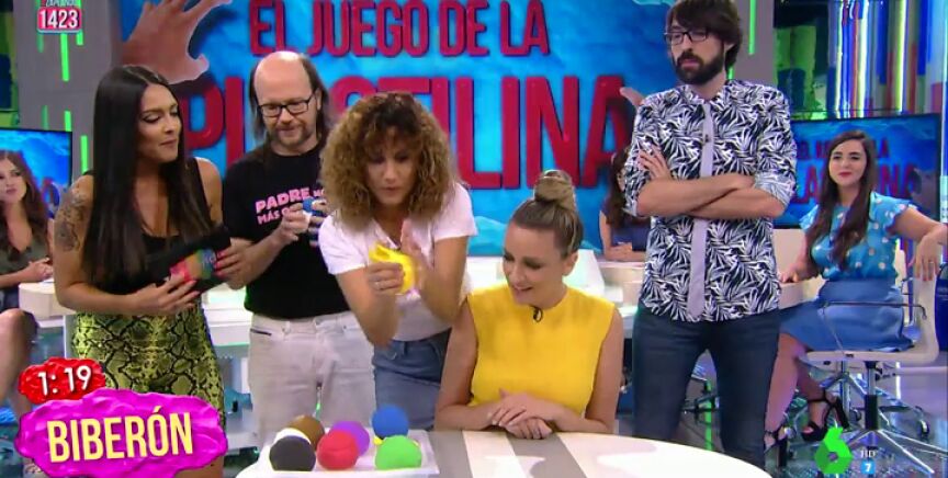 El primer grupo lo forman Santiago Segura y Quique Peinado. El zapeador deberá adivinar en un minuto las figuras de plastilina que construye su pareja. Debido a los numerosos intentos del actor, Lorena Castell se percata de que no es su fuerte y le recrimina: "Estamos jugando poquito a plastilina con las niñas ¿eh?".