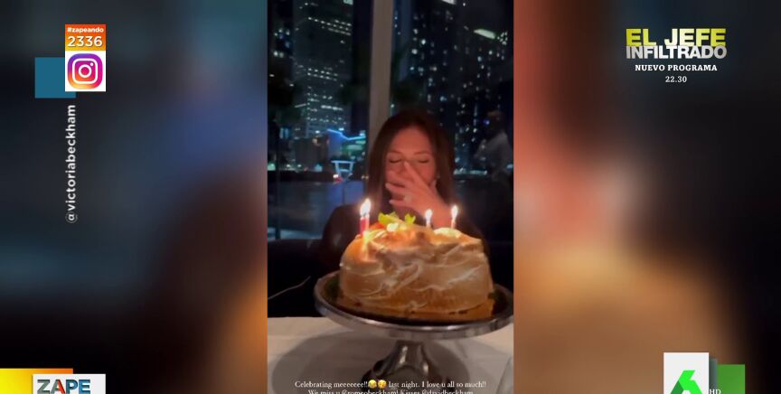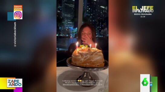 Victoria Beckham cumple 49 años y decide celebrarlo con su familia en un restaurante. La diseñadora no es capaz de contener la emoción cuando ve aparecer una enorme tarta y todos los presentes en el local comienzan a cantarle 'Cumpleaños feliz'.