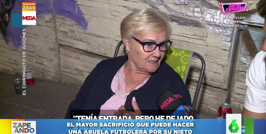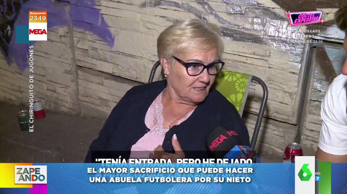 "Estoy aquí sentada oyendo el partido porque mis hijos están dentro. Yo tenía entrada, lo que pasa es que he dejado a mi nieto que entrara por mí", se sinceraba ante los micrófonos del programa.
