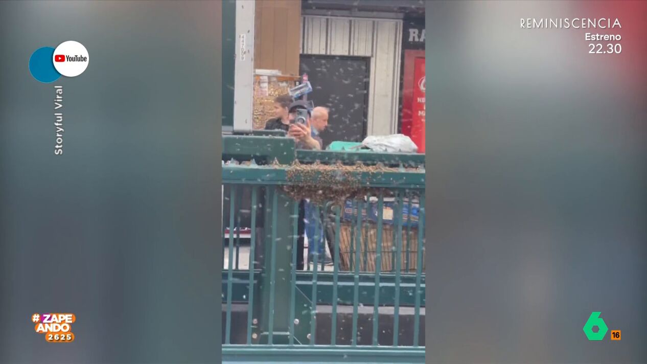 "Algunos se ponen a grabar con el móvil... pero yo veo eso y me subo a lo alto del Empire State", añade el zapeador. "Pero no hacen nada las abejas, a mí es un animal que me cae guay", afirma Berta Collado.