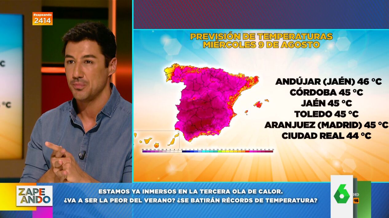 Aún no existen datos que confirmen si será o no la última del verano pero las previsiones señalan que "este mes de agosto será muy caluroso y muy seco", advierte el meteorólogo. "Más que un país es una brasa, puedes hacer chuletas", comenta Quique Peinado al ver el mapa de las temperaturas que se esperan para estos días.
