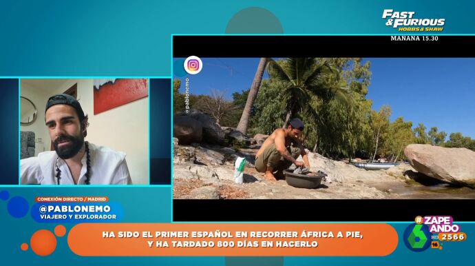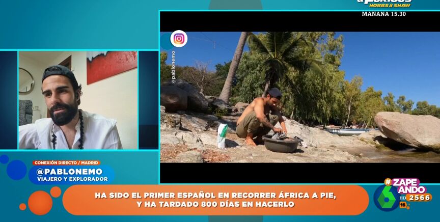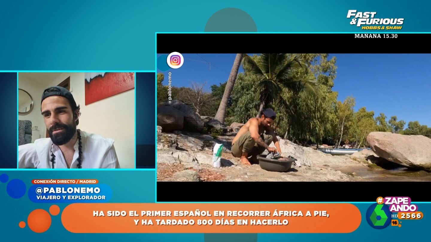 El viajero y explorador, Pablo Nemo , ha sido el primer español que se ha recorrido África a pie. Su aventura ha durado 800 días, pero ¿cuánto se ha gastado en su aventura? "Como buen catalán tengo la curiosidad", comenta Dani Mateo, que recalca que, aunque lo haya hecho a pie, son "800 días comiendo fuera". "Eso es un dineral y no siempre habrás encontrado menú", comenta el presentador.