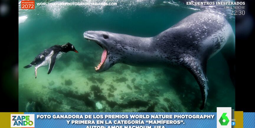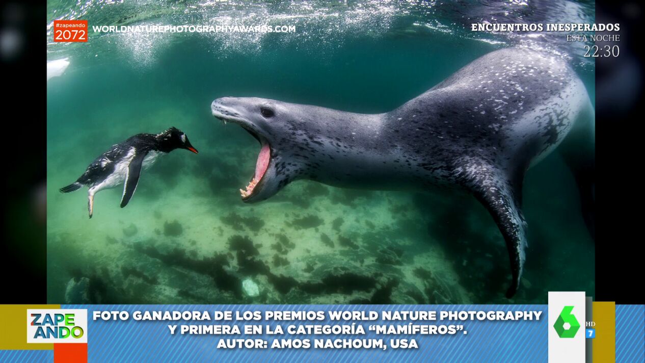 Mientras que el presentador apuesta por que no faltará una "foca en ojo de buey", Lorena Castell cree que habrá una imagen "del mundo marino" en la que aparecerá un "pescado comiéndose a otro". ¿Estarán en lo cierto? Descúbrelo en el vídeo principal de la noticia, en él te dejamos las fotos y los artistas galardonados con un premio World Nature Photography. La cuantía de dinero que reciben los ganadores "es lo que damos con la sandía" de Zapeando, aprecia Dani Mateo, que es muy observador.