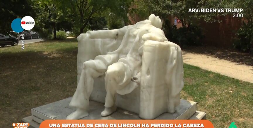 Como se puede apreciar en el video, la estatua de cera de Lincoln, instalada en el pasado mes de febrero en Washington, ha terminado casi desintegrada por el abrasador calor.