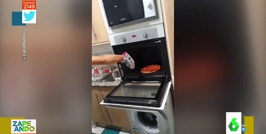 María Gómez presenta un vídeo protagonizado por "los únicos chavales de España que no van a trabajar en una cadena de comida rápida". "Por inutilidad", añade la zapeadora al mostrar cómo un grupo de jóvenes no es capaz de sacar una pizza del horno.