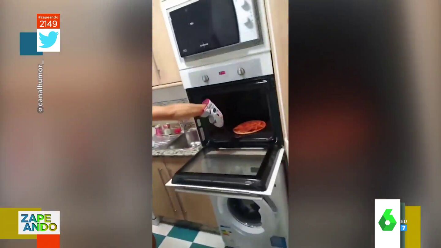 "Son los únicos chavales de España que no van a trabajar en una cadena de comida rápida, por inutilidad", afirma María Gomez al mostrar cómo un grupo de jóvenes intenta sacar una pizza del horno. Puedes ver este momento en este vídeo.