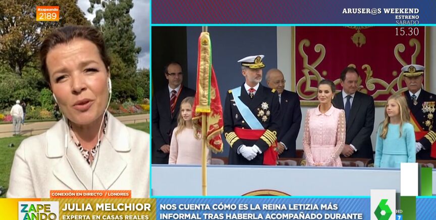 "Es una mujer con la que me gustaría tomar unas cervezas y hablar porque es una persona muy interesante, emancipada, moderna", destaca la periodista, que afirma que la reina Letizia "es una mujer que lucha tanto como yo entre el trabajo y la familia". Además, Melchior recalca que la reina Letizia es una mujer que trabaja mucho y que muchas de estas tareas pasan desapercibidas.