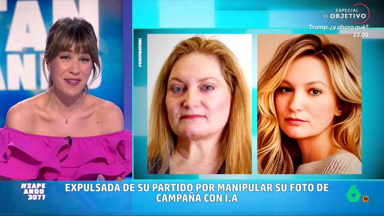 En el vídeo sobre estas líneas María Gómez nos muestra una foto de la política y cómo quedó tras pasar por la IA: "Es la versión política de lo que prometes y lo que cumples", reacciona la zapeadora.
