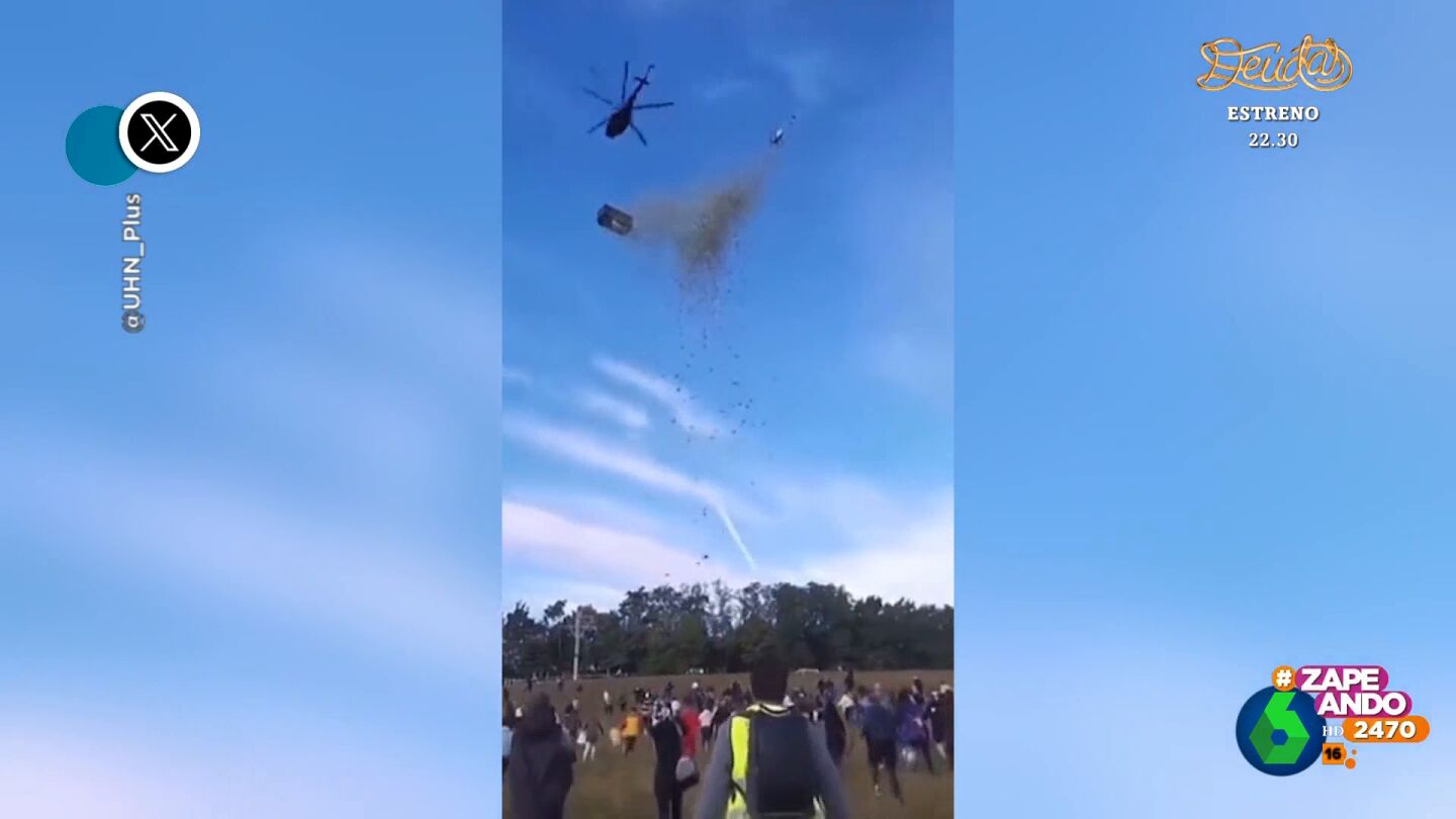 La extravagante acción de un influencer checo: tira un millón de dólares desde un helicóptero